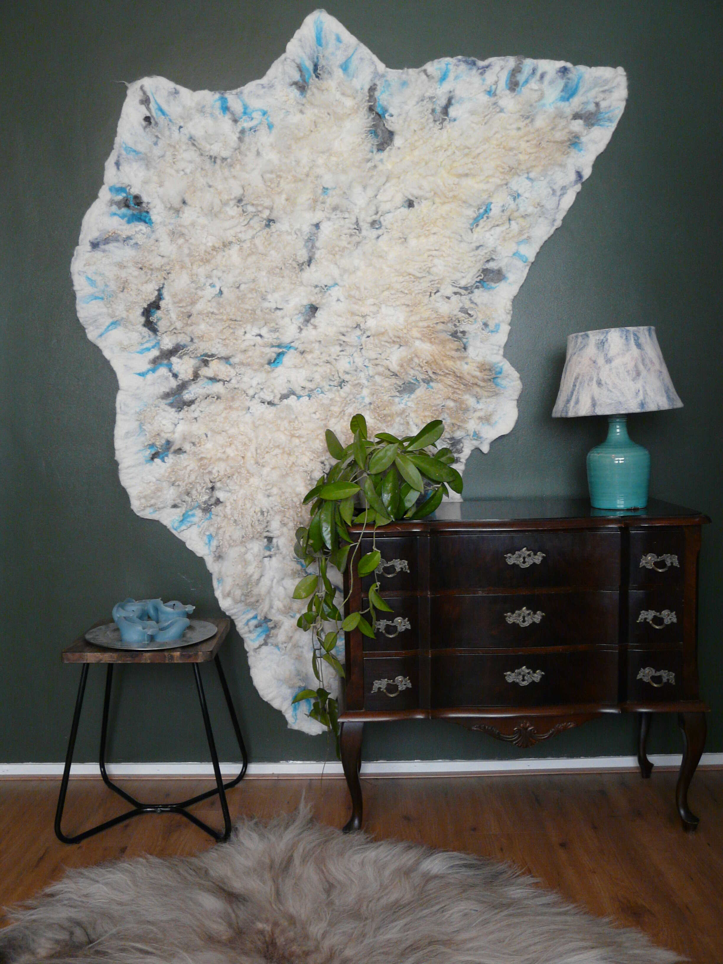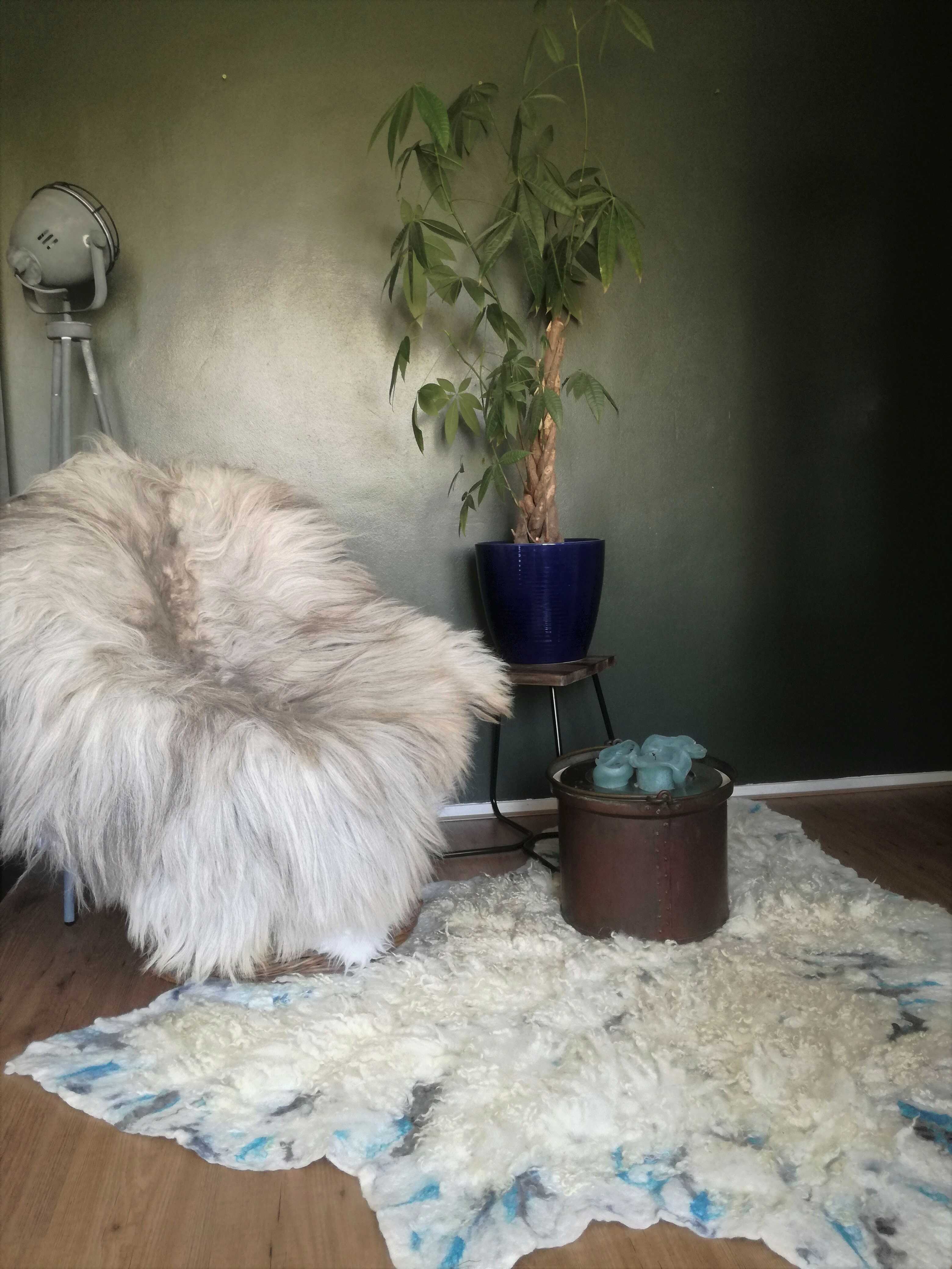 Wandkleed 'Curly Carly' is gemaakt van de vacht van een Wensleydale/Swifter schaap gecombineerd met Merinowol en zijde.
